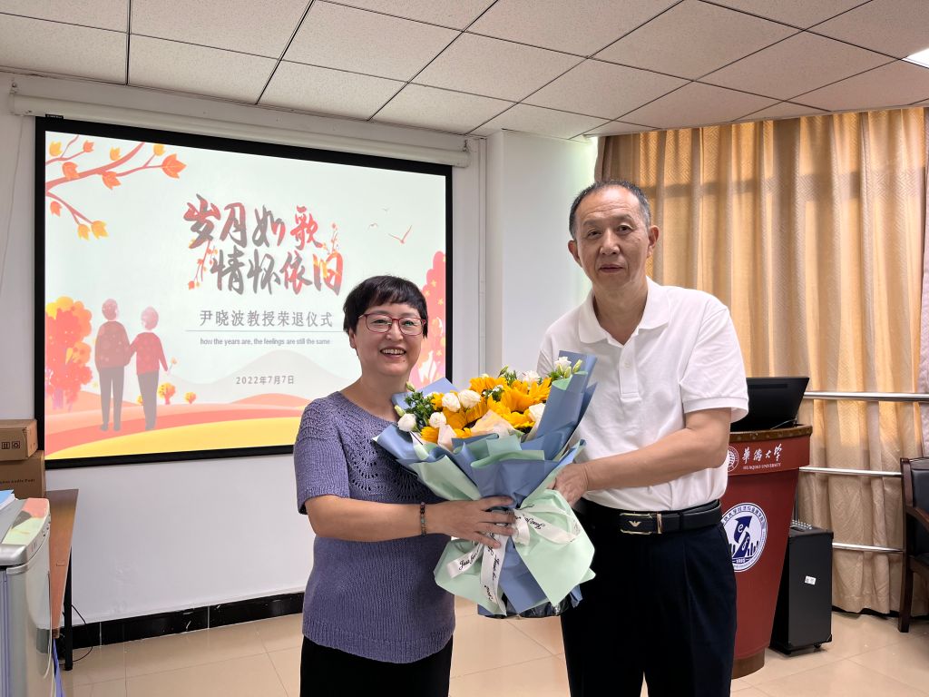 于经管506会议室为尹晓波教授举办了温馨隆重的荣退仪式,院长郭克莎,党委书记黄建烽,人事处副处长钱三平,副院长苏梽芳、王景河,院工会主席郭丽及相关教师参加会议。仪式由院工会主席郭丽主持。