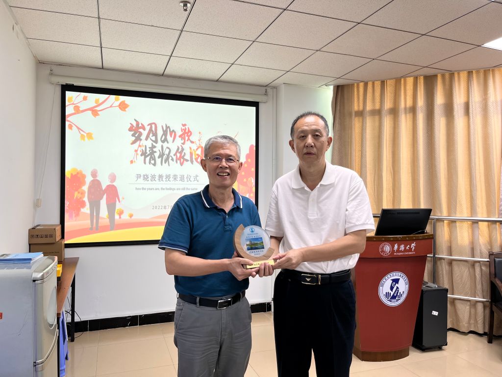郭克莎院长为尹晓波教授颁发荣退纪念品