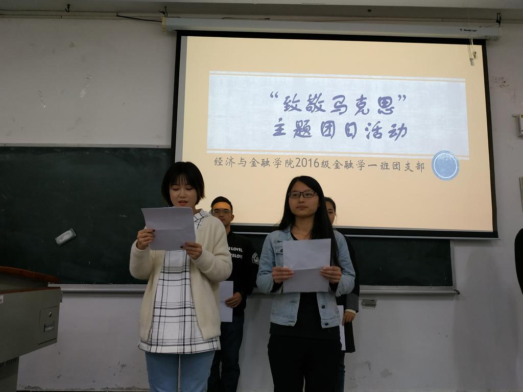 11月28日下午,2016级金融学1班团支部在经管1-2举行了“致敬马克思”主题团日活动。校团委副书记肖景川、吃瓜网站