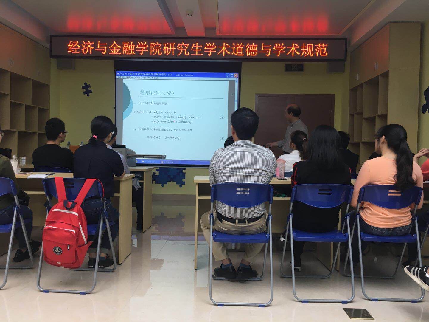 2018年11月16日星期五上午10点, “经济学名家讲坛”第七讲在经管807多媒体会议室开讲。中国数量经济学会副理事长、上海社会科学院研究生院院长、数量经济研究中心研究员、教授,博士生导师朱平芳教授应邀担任主讲嘉宾,为学院部分老师、博士生及研究生做了题为“异方差下条件处理效应的非参数估计及应用”的专题讲座,朱教授主要从事数量经济理论与方法应用、经济增长与科技创新等方面的研究。在国内外经济学权威学术刊物《经济研究》、《数量经济技术经济研究》、《统计研究》和《China Economic Review》(SSCI)、《Economic Letters》(SSCI) 等上发表论文二十多篇。主持、参与完成10余项国家级研究项目及国际合作研究项目。本次讲座由副院长苏梽芳教授主持,