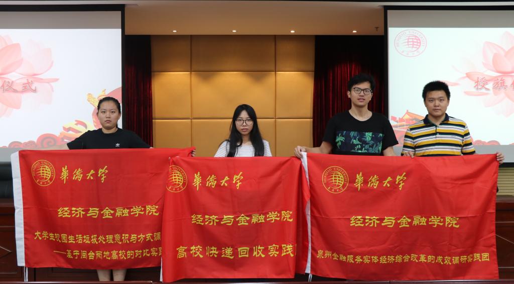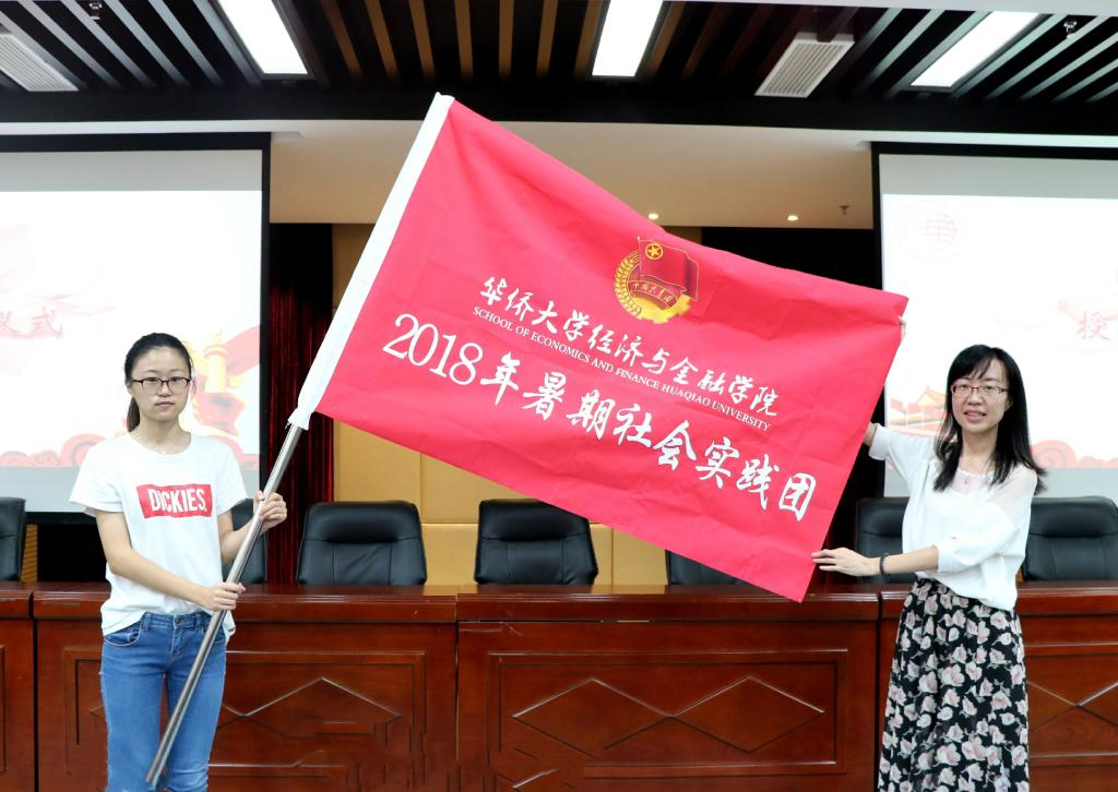 2018年暑期社会实践授总旗,并与何源、魏心融分别为专项团队授旗。