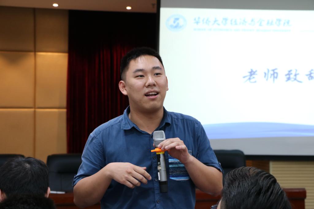 最后,李唯、朱柏林、魏心融、孙君芳先后致辞。李唯向大家建议做好四个“一”:开会记一页笔记,每次上台讲一个笑话,每次参与活动都创新一点,每当有一点心事就找部长或老师谈谈心。朱柏林则指出了学生委员在学习分享会上的不足之处,希望大家戒骄戒躁,沉下心来做事情。魏心融鼓励大家把世界观变成方法论进入工作中,做好手头的工作,学会创新并有所提升。孙君芳希望大家不要低估自己,她表示,即使是一颗螺丝钉对整个经金都有很大的作用。