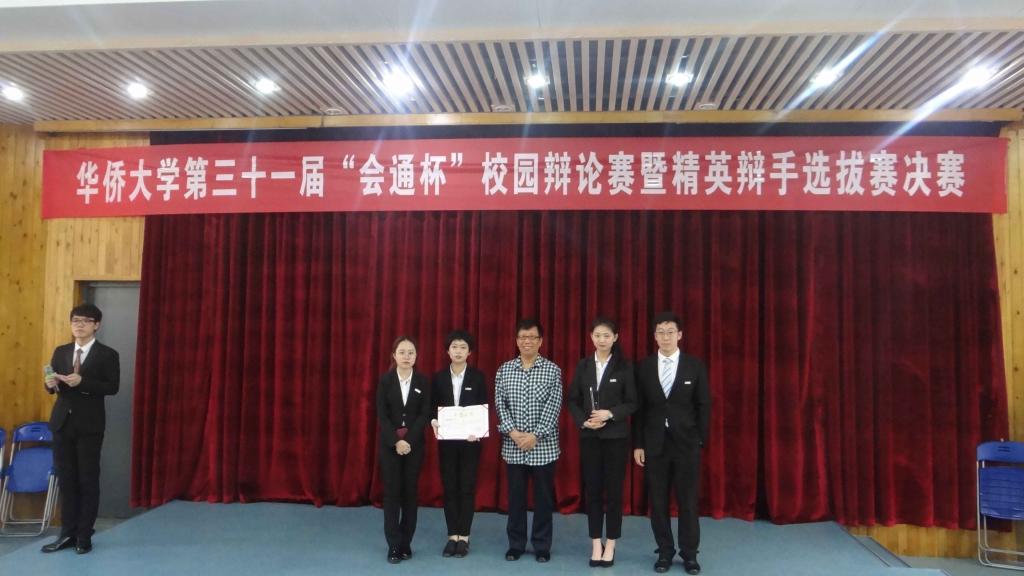 第31届“会通杯”校园辩论赛暨精英辩手选拔赛决赛在泉州校区庄为煊报告厅举办。创新创业学院副院长王晶、马克思主义学院肖北婴、新闻与传播学院马正恺、泉州市丰泽区东湖法庭副庭长吴新竹、福建泉中律师所高级合伙人张倩雯担任本次比赛评委,学生处副处长杜秀宗、生物医学院团委书记张震岳作为嘉宾出席。