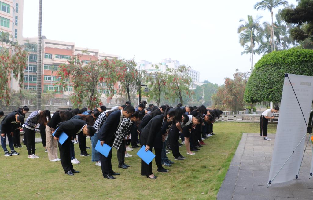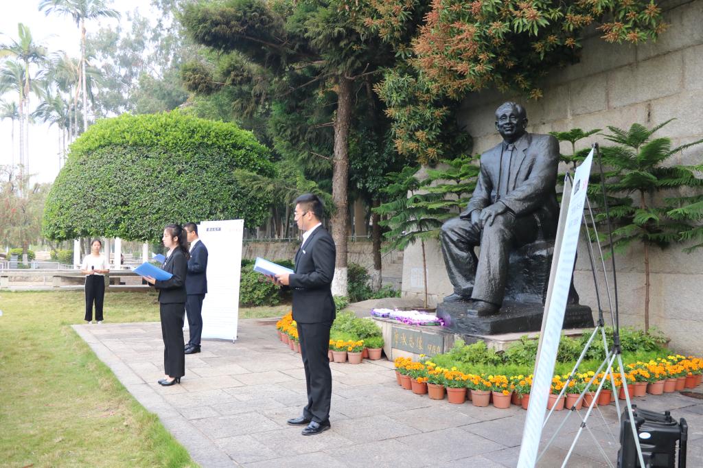 缅怀廖承志诞辰110周年仪式于秋中湖廖承志铜像前隆重举行。学院全体辅导员、党员一同参加此次缅怀仪式。