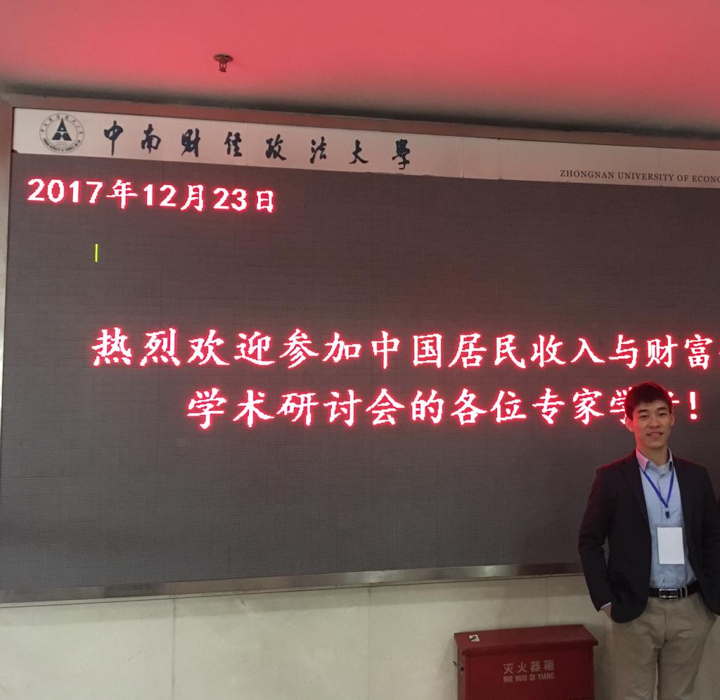 金融学系副主任肖威博士应邀参加由《经济研究》编辑部与中南财经政法大学财政税务学院、中南财经政法大学居民收入分配研究中心联合主办的中国居民收入与财富分配学术研讨会(2017)。会议由中南财经政法大学校长杨灿明教授致辞,邀请到南开大学陈宗胜教授、北京师范大学李实教授、西南财经大学甘犁教授、中国人民大学陈彦斌教授等国内收入分配研究领域的权威专家出席。