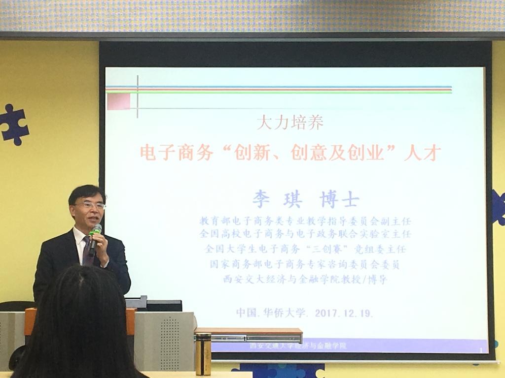 ,在经管807做“电子商务‘创新、创意及创业’人才培养”专题讲座,讲座由电子商务系主任瞿辉主持,吃瓜网站
