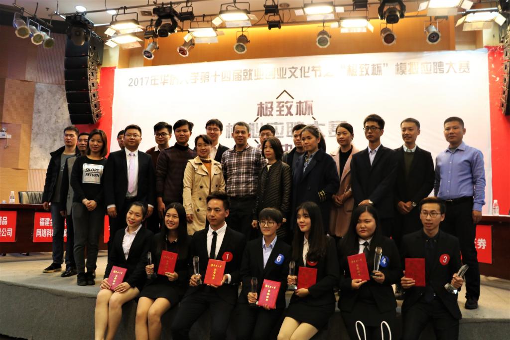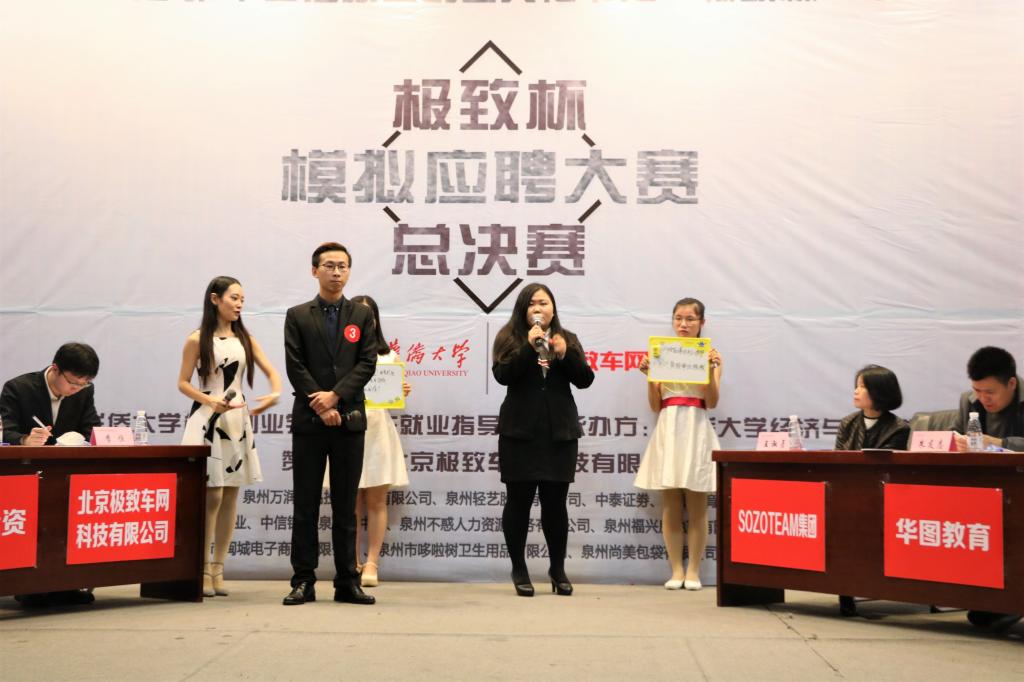 承办的第十四届就业创业文化节之“极致杯”模拟应聘大赛决赛在明德堂举办,极致车网CFO李恒,有余投资副总经理李遥恒,金鹿集团副总经理、福建金鹿美食家园网络科技有限公司总经理张欧,泉州轻艺股份有限公司总经理助理欧腾达,SOZOTEAM集团总裁王淑贞,中泰证券财富管理部经理郭敏,华图教育泉州教研经理朱友志,新起点英语校长刘大卫,泉州福兴房地产有限公司李玉莲,中国银行泉州华大支行黄晓琴,福建省恒夏服饰织造有限公司销售总监段瑞恒,泉州丰泽佳诚通讯设备有限公司总经理黄允盛,泉州市哆啦树卫生用品有限公司人力资源总监余佳,泉州不惑人力资源管理股份有限公司总经理林聪水,泉州惠安宝马4s店人事经理黄接,泉州尚美包装有限公司总经理赵玉衡,厦门斯巴特有限公司廖晓清,超星集团医疗事业部洪浩等应邀担任评委,吃瓜网站
