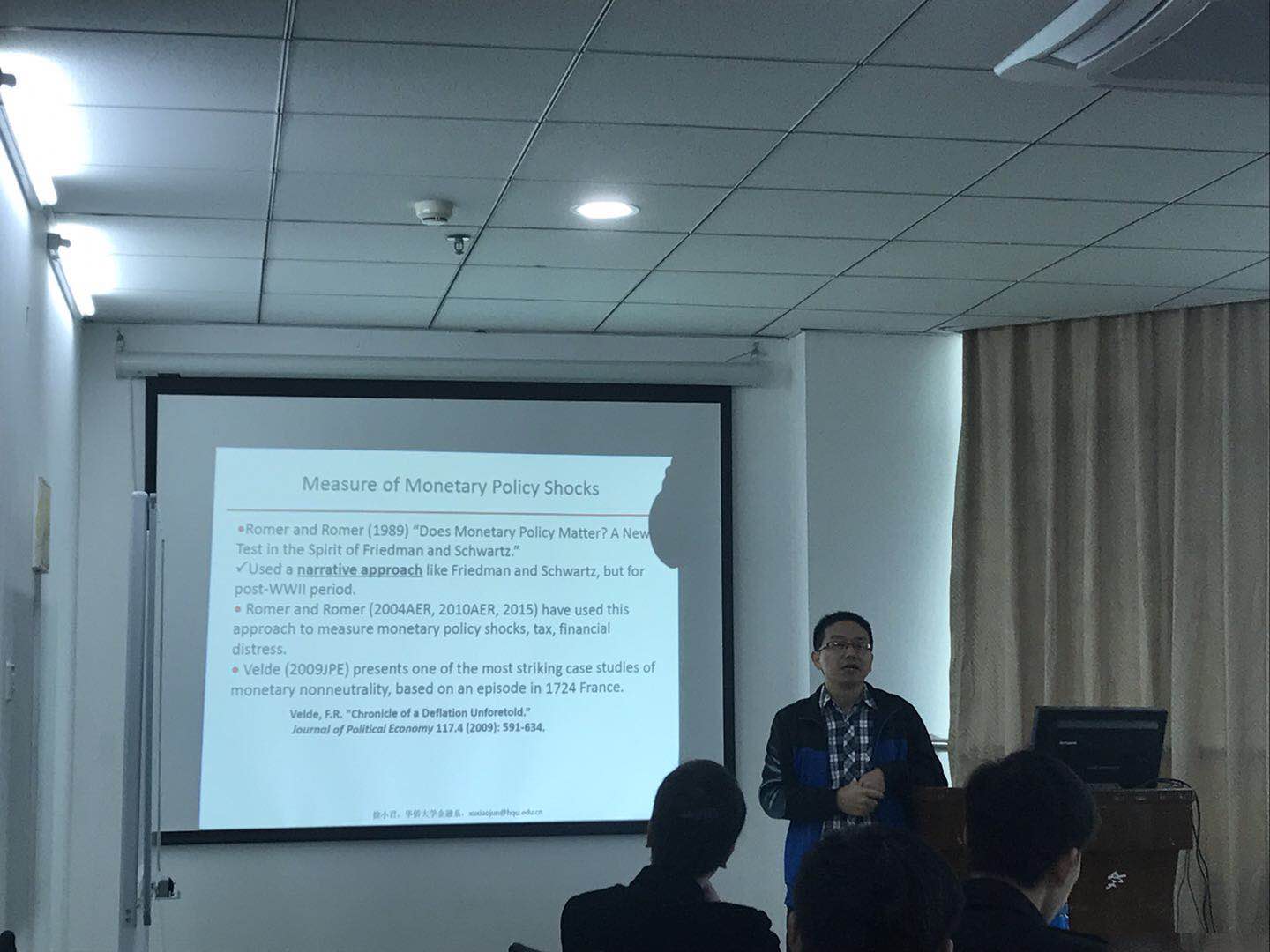 徐小君副教授和肖威博士分别就“测度宏观经济冲击:SVAR方法新近发展及应用”和“转型期中国劳动收入差距和资本收入差距对经济增长的不同影响”两个主题做报告,魏下海教授应邀担任评论人,学院部分教师及研究生一同参加。