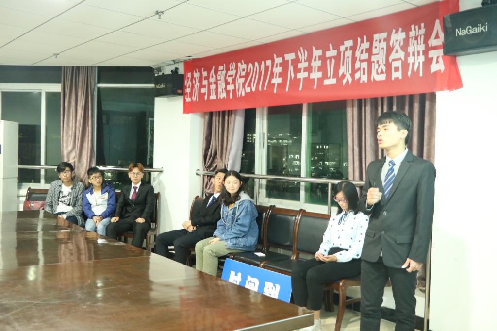 2017年下半年立项结题答辩会在经管理806举行,金融学系刘卫红,电子商务系赵飞、刘珊,辅导员黄丹婷,学生团委副书记田园以及各个项目团队负责人参加了此次答辩会。