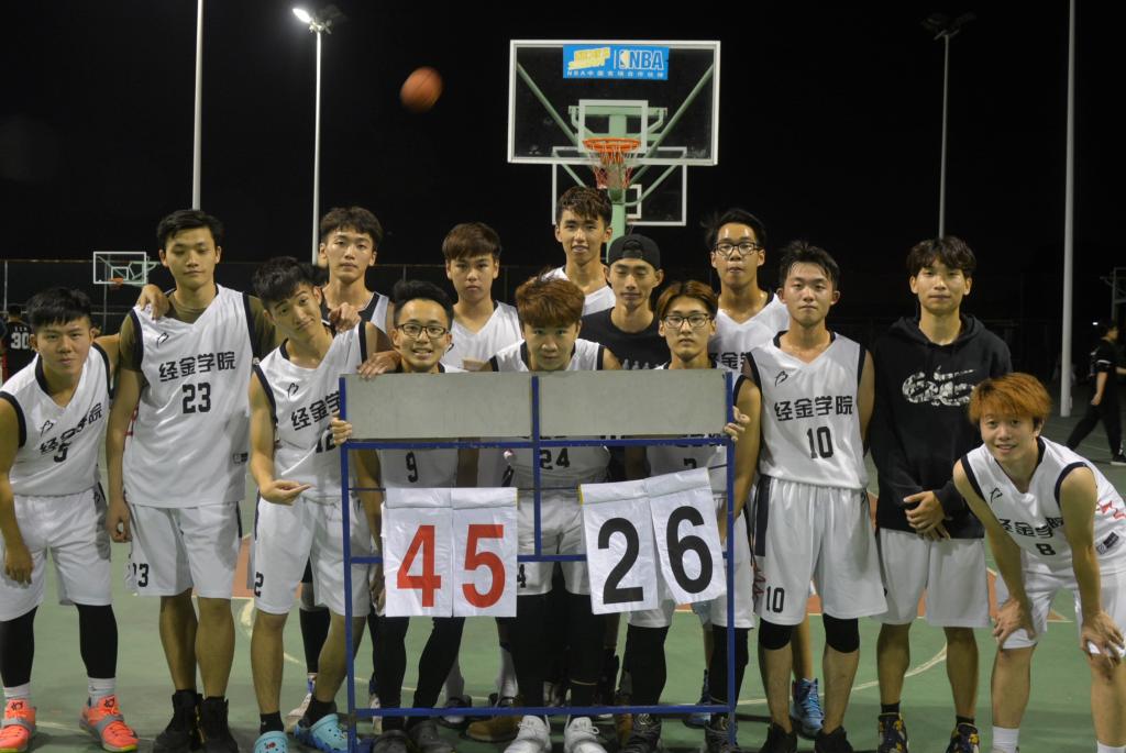 男篮运球娴熟,传球默契,良好地控制了全场的节奏,在围观同学们的加油呐喊声下,以45:26的比分取得了新生杯男篮第三名的优秀成绩。