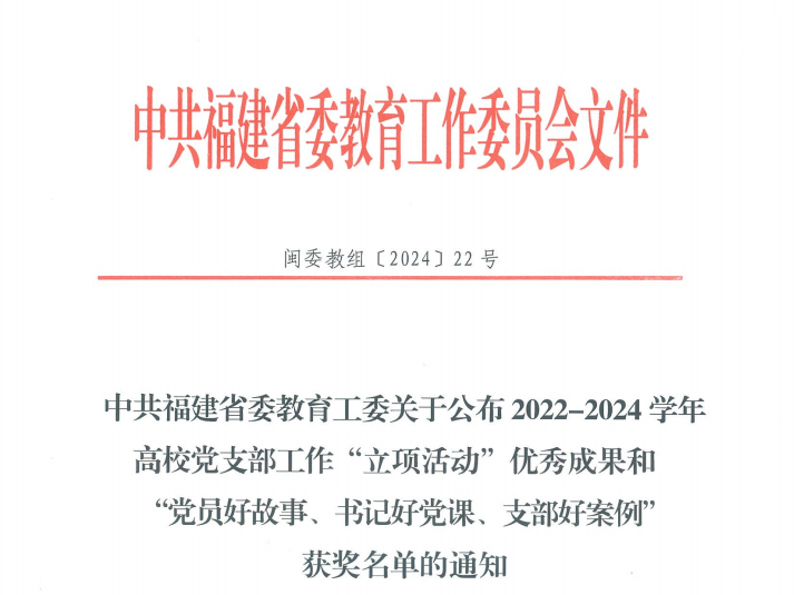 近日,中共福建省委教育工委公布2022—2024学年福建省高校党支部工作“立项活动”优秀成果和“党员好故事、书记好党课、支部好案例”获奖名单。吃瓜网站