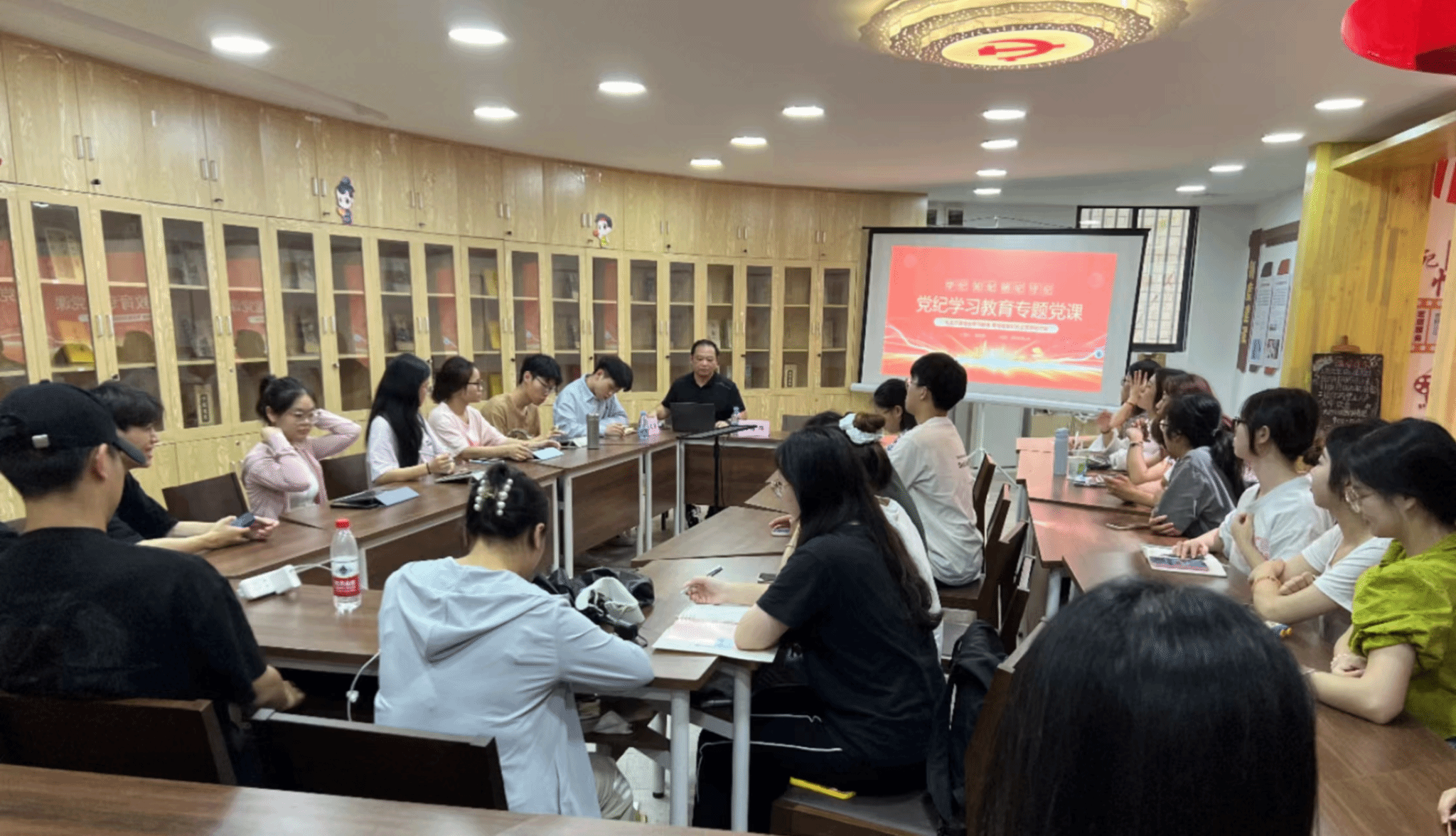 黄建烽书记对《中国共产党纪律处分条例》作导读及问题引导,对《条例》的历史事件、重要意义以及实际案例等进行深入讲解。他提到,学生党员要心存党性的“度尺”,手握党风的“标尺”,头顶党纪的“戒尺”,进一步强化党性修养,牢牢树立纪律意识,自觉遵守纪律规矩,推动党纪学习教育入脑入心;把纪律学习作为必修课,做到学纪知纪明纪守纪,切实把学习成果转化为推动各项事业高质量发展的实际成效,为培养德智体美劳全面发展的时代新人持续奋斗。