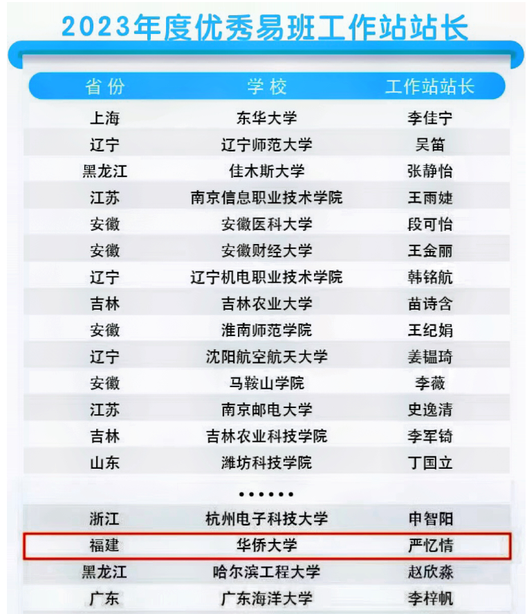 学子严忆情荣获 “2023年全国优秀易班工作站站长”