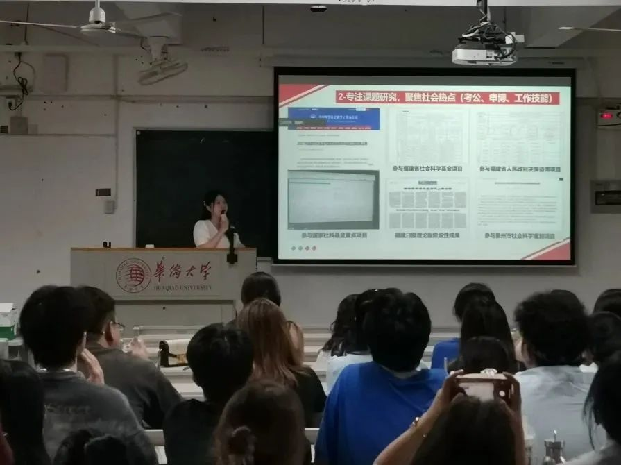 最后,校研究生会执行主席白雨露学姐就自己的学生工作经历给新生们做了分享,并给有相似经历的学妹解答疑惑,提出了针对性的建议。然后从提出学生工作的意义、如何选择社团、如何平衡学生工作与学习三个方面,为同学们指点了迷津。