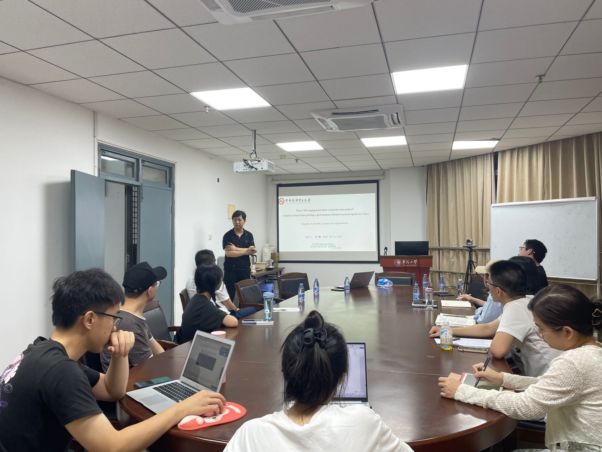 邀请到了首都经济贸易大学金融学院何枫教授为同学们作题为“ESG and corporate misconduct:evidence from firms joining a social program in China”的专题分享。