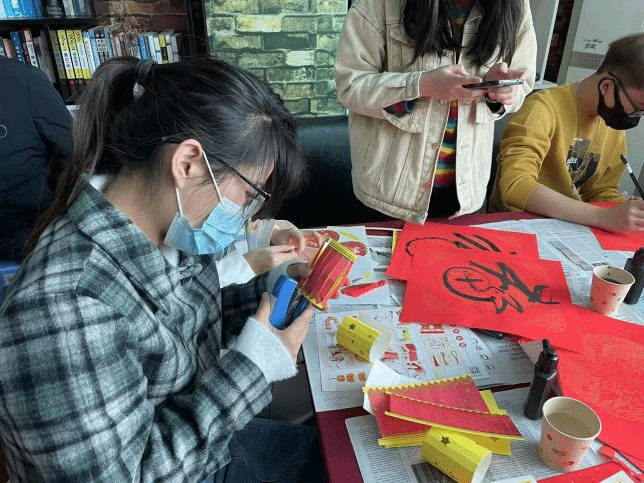 与往年不同的是,今年学院留校的学生以外国留学生居多,且多数近期刚入境来到中国求学。2022级经济学类5班的马来西亚留学生汤子豪就是其中的一员,他大方地向大家展示自己写的“福”字,并说道:“我没想到我有机会可以来中国读书,这也是我第一次出国,第一次只和朋友们过年,但这些‘第一次’都是非常特别和难忘的体验。”来自缅甸的2021级电子商务2班华裔留学生李秋红表示:“听着身边的人都说着熟悉的语言,过着熟悉的节日,即使是在学校也有家的味道。”