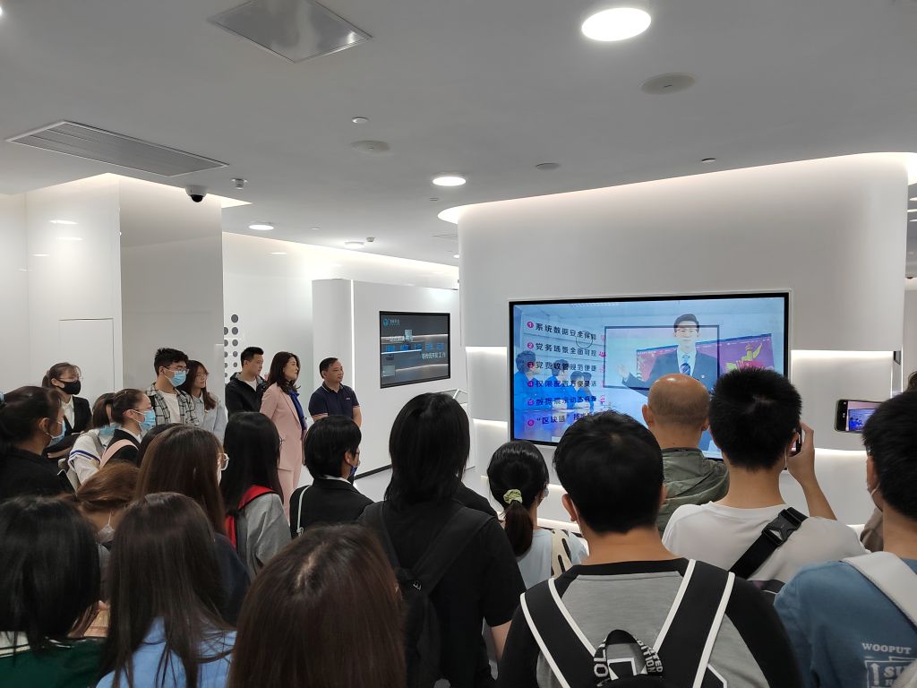 孙立平在陪同师生参观金融科技展厅时,围绕学习宣传贯彻党的二十大精神,介绍了招行泉州分行的党建工作开展情况,就“智慧党建”成效与经验与师生进行交流,鼓励和欢迎经金学子走近招行、了解招行,到招行工作、实习、交流。宋闽简要介绍了分行和学院的合作历史及渊源,希望银校能够进一步加强联系、拓展空间,实现更加深度的合作共赢。其他负责人也分别向师生详细介绍了招行泉州分行的历史、发展、现状及人力资源政策,包括学院学子在该行就业和实习的具体情况等。刘益还作为学院优秀校友作了精彩分享。