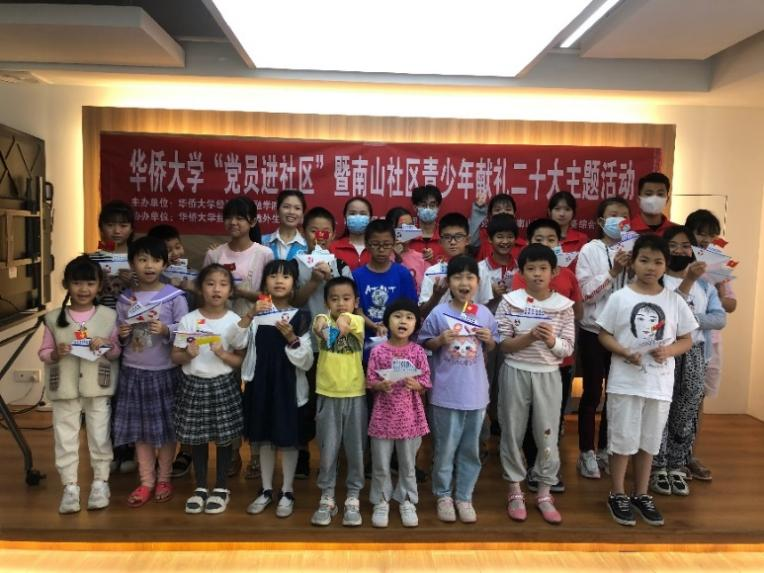 党员志愿者与南山社区侨眷青少年进行合影留念