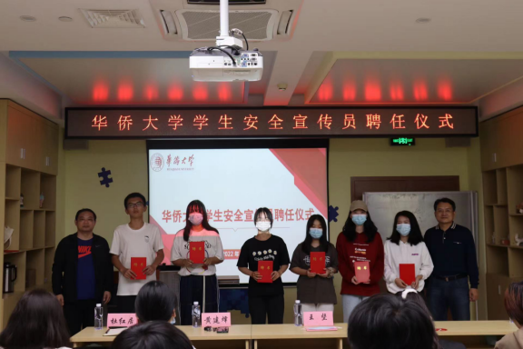 仪式开始前,通过观看情景剧视频,同学们更好的了解到安全宣传教育的重要性。仪式开始第一项,由王坚处长和黄建烽书记为宣传员们颁发聘任聘书并合影留念。仪式第二项,由安全宣传员代表陈芯田发言,讲述了安全的内容,安全宣传员的工作目标,工作内容。仪式第三项,由保卫处王坚处长为安全宣传员展开安全主题讲座,讲座内容重点强调了常见的安全隐患,隐患的规避与处置。