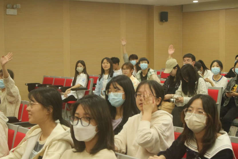 本次比赛分为“棋逢对手”“虎口脱险”“步步惊心”“强强对决”四个环节,形式多样,内容丰富。每支参赛团队由三名同学组成,“棋逢对手”环节通过双方队伍抢答来获得答题机会,最终依据答题所得分数进行排名淘汰;“虎口脱险”环节从淘汰的团队中复活一个团队再进行之后的比赛;“步步惊心”考验的是胆识和勇气,选择难度越高的题,团队获得的加分越多;经过一番激烈的比拼,“强强对决”环节产生了最后赢家。比赛过程中,参赛团队情绪高昂,团结协作,现场氛围欢乐热烈。